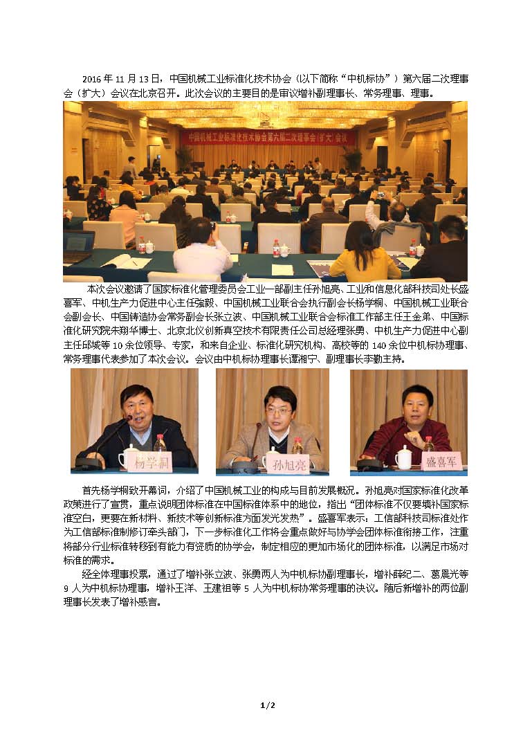 中國機(jī)械工業(yè)標(biāo)準(zhǔn)化技術(shù)協(xié)會(huì)第六屆二次理事會(huì)(擴(kuò)大)會(huì)議召開